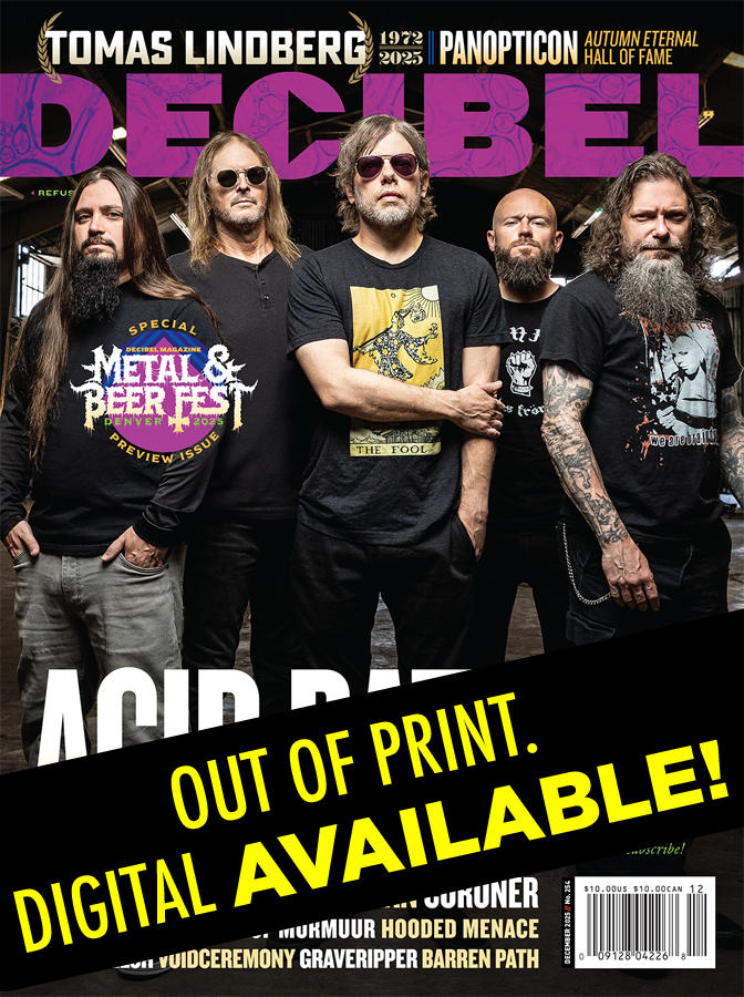 The Decibel Magazine Metal & Beer Fest: Denver 2025 Special Preview Issue! Featuring: Tomas Lindberg 1972–2025, Testament, Primitive Man, Coroner, Agnostic Front, plus the Decibel Hall of Fame: The Making of Panopticon's Autumn Eternal