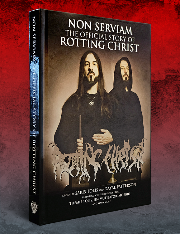 Three years in the making, this epic, full-color, glossy 300-page book explores three decades of history of the legendary Greek extreme metal legends Rotting Christ. Written by founder and frontman Sakis Tolis and author Dayal Patterson (Black Metal: Evolution of the Cult, The Cult Never Dies Vol. 1 and Into the Abyss), Non Serviam dives deep into the earliest grindcore tape-trading days of the band, to their role in the rise of the international black metal scene through their current status as extreme metal icons.