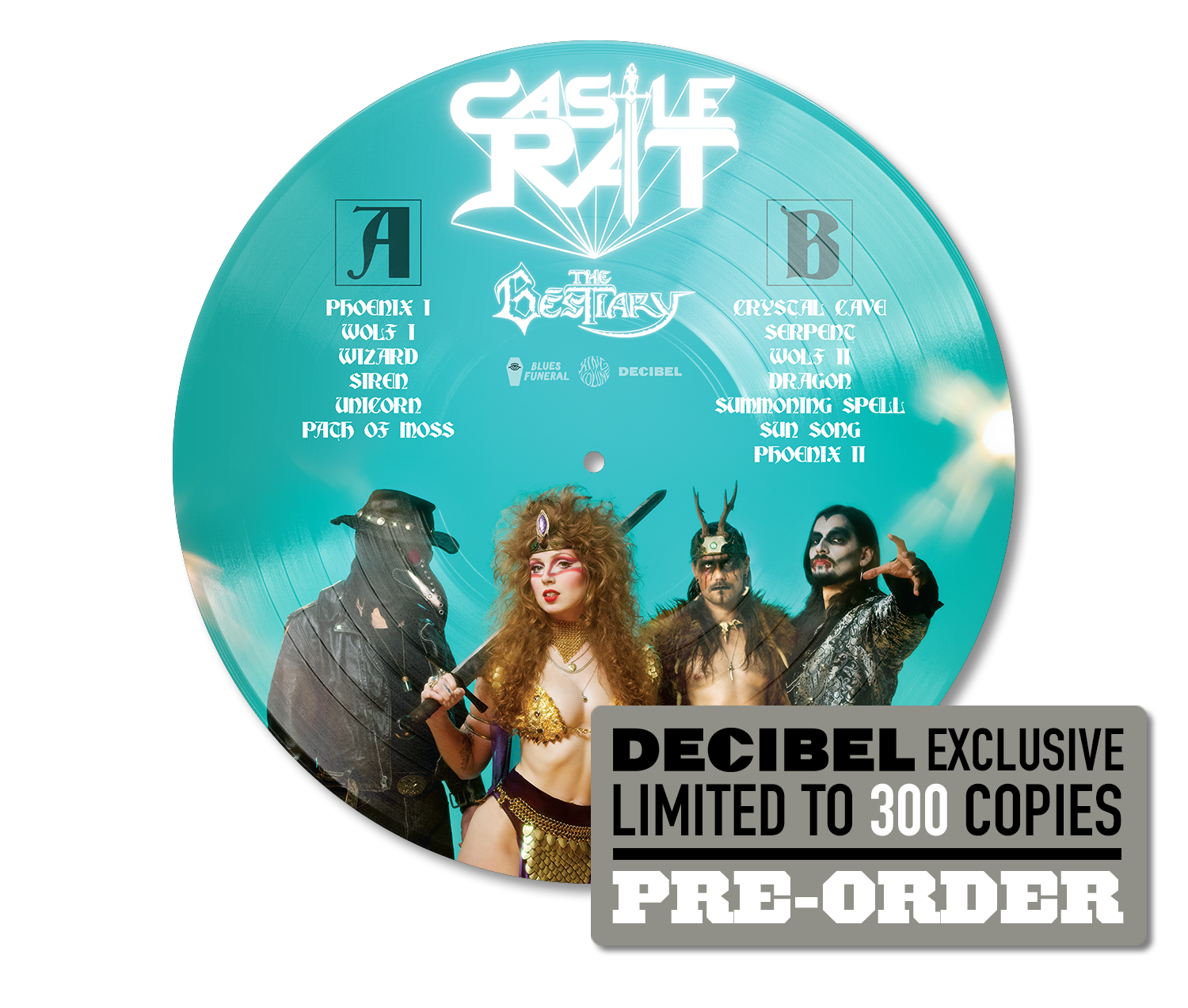 Behold! To celebrate Castle Rat’s opening spot on this spring’s epic AmonKlok tour, King Volume, Blues Funeral and Decibel proudly present this limited-edition PICTURE DISC edition LP of The Bestiary, featuring the iconic cover photo from Castle Rat’s October 2025 Decibel magazine cover story. Decibel is the exclusive online home for this even more exclusive picture disc -- it's limited to 300 copies -- and the pre-order starts NOW. Records are scheduled to ship April 10, just in time for the start of Castle Rat’s tour with Amon Amarth and Dethklok.