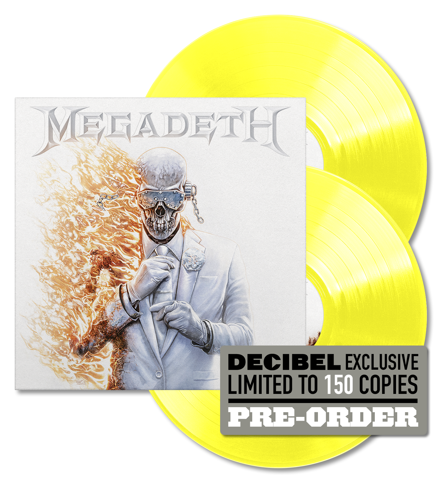 In early 2026, Megadeth will release their final studio album via Dave Mustaine’s Tradecraft imprint in partnership with Frontiers Label Group’s new BLKIIBLK label. Serving as the definitive closing chapter to one of the most influential catalogs in heavy metal, Megadeth represents a creative milestone, and Decibel is honored to offer this North American exclusive Fluorescent Yellow Colored Double LP variant of the record on a 180-gram vinyl limited to 150 copies.